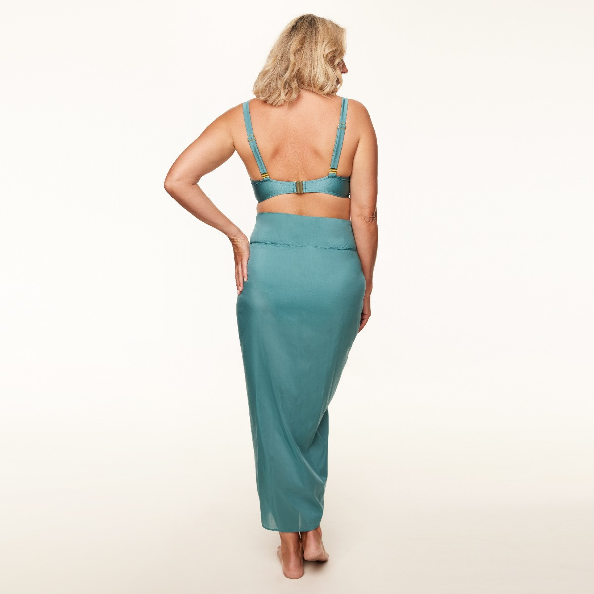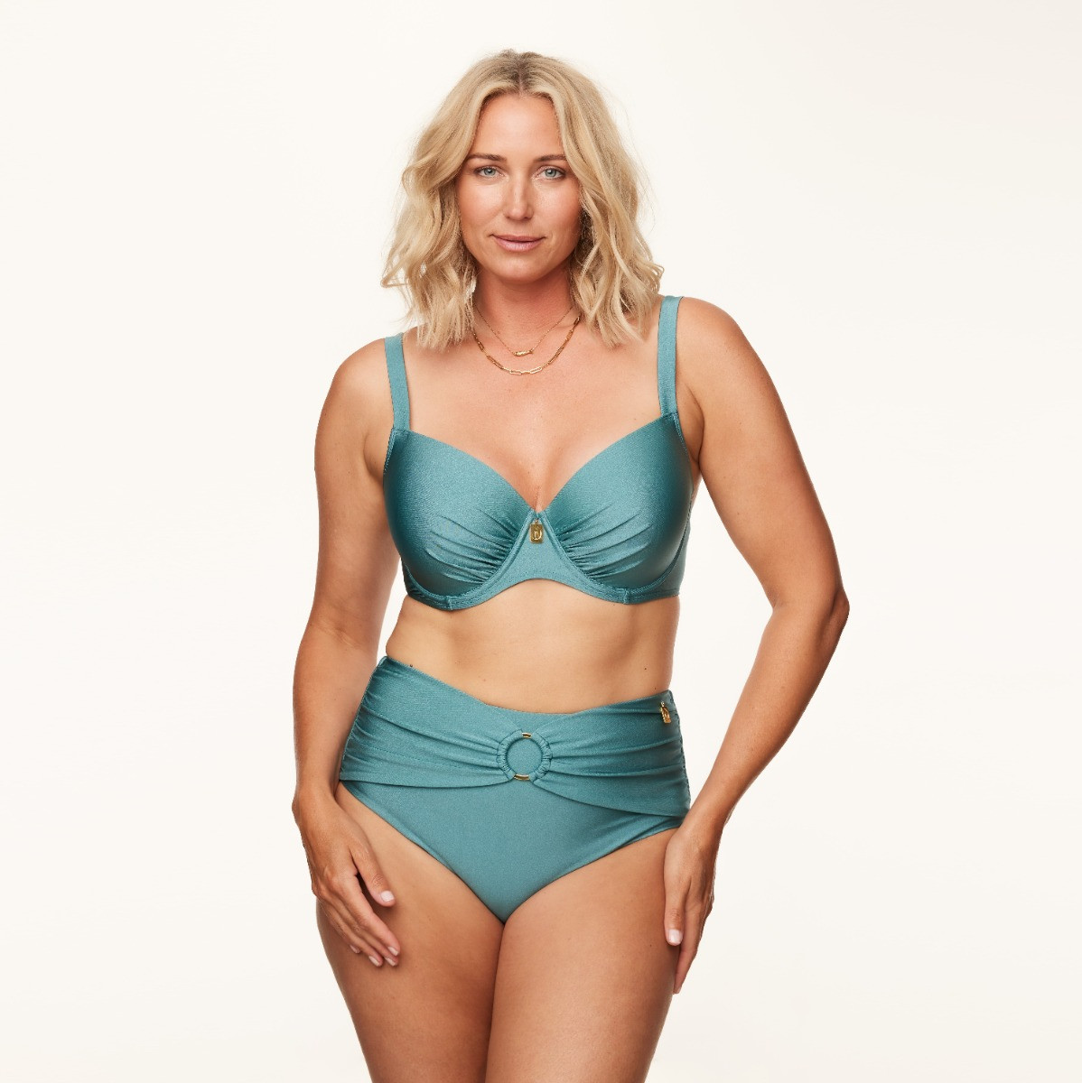 Designer’s Note – Mariëlle van der Loo “De kristalblauwe glans van Frozen Waters geeft deze balconette direct een moderne luxe. De cups vormen en centreren prachtig, zonder te veel te bedekken. Een balans die voor veel vrouwen werkt. Elegant, flatterend en heerlijk zomers.”