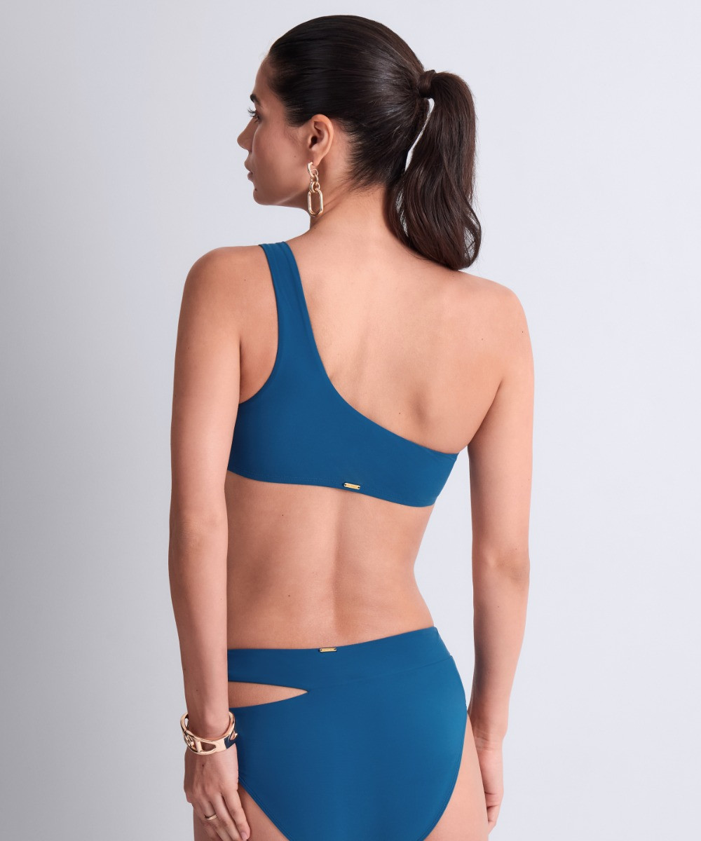 Blauwe one shoulder bikinitop van Aubade Badmode