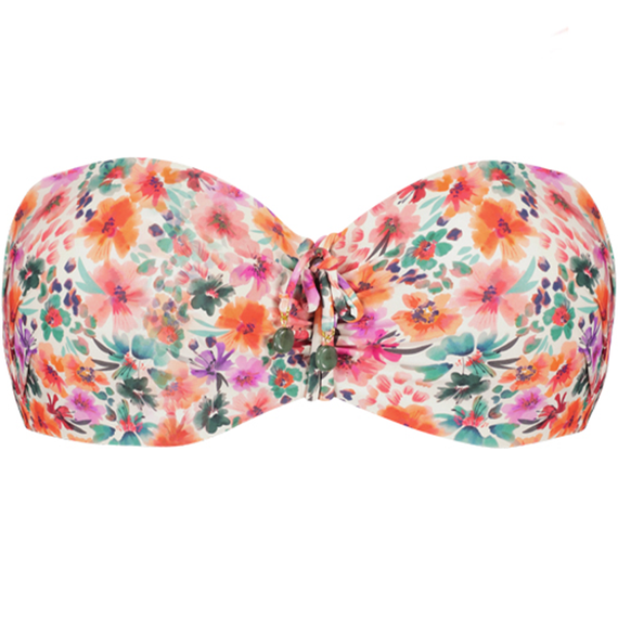 De bandeau bikinitop van Cyell Badmode uit de Meadow Mood collectie is uitgevoerd in een zomerse bloemenprint. Van dit bloemenprintje krijg je gelijk een vrolijk gevoel. Dankzij het handige klik-systeem is de top op meerdere manieren te dragen: strapless, met schouderbandjes of als halter. Combineer dit bikinitopje met een bikinibroekje uit de Meadow Mood collectie om deze zomer te stralen langs de waterkant.