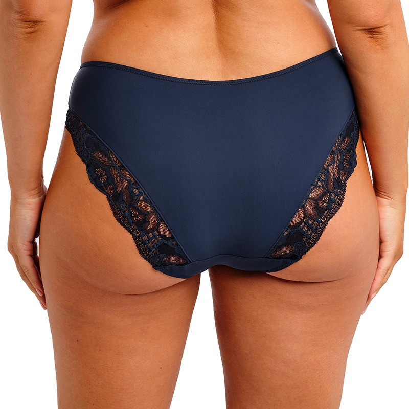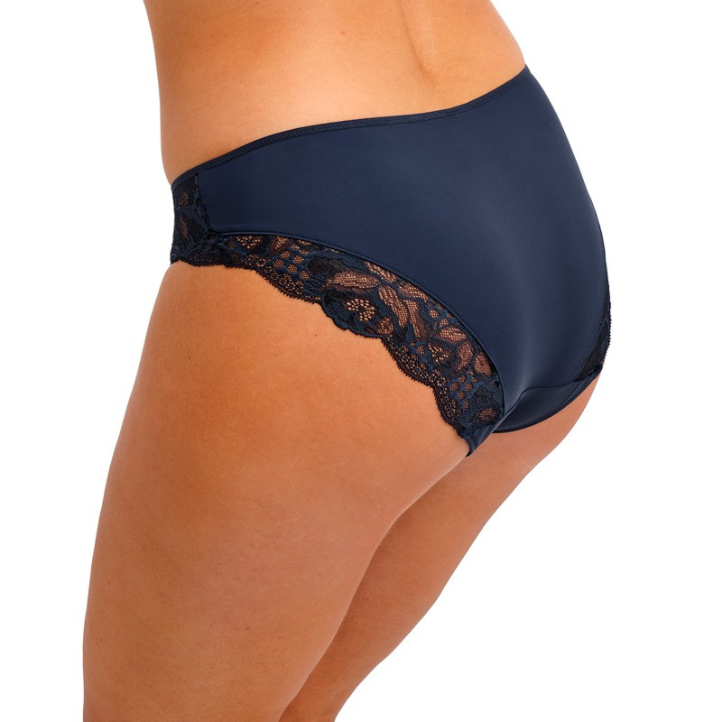 De Reflect side support BH van Fantasie is uitgevoerd in de kleur Navy. De cups van deze donkerblauwe BH zijn aan de bovenkant versierd met een strook kant in een uniek patroon van bloemen en ruitjes. Deze BH is voorzien van "side support", wat inhoudt dat de zijkanten zijn verstevigd en zorgen voor extra ondersteuning van de borsten. De schouderbandjes zijn aangehecht met ringdetails. Combineer deze BH met de bijpassende slip. De perfecte combinatie tussen comfort, ondersteuning en fashion.