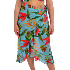 De Pichola pareo van Fantasie Swim is uitgevoerd in de kleur Aqua. Deze pareo is voorzien van een exotische print op een donkergroene ondergrond. Deze pareo is op verschillende manieren te dragen over je bikini of badpak en is ideaal om mee te nemen naar het strand. Door het lichte materiaal schijnt de pareo door. Combineer deze pareo met de bijpassende badmode.