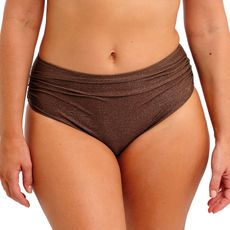Het Sabana hoge bikinibroekje van Fantasie Swim is uitgevoerd in de kleur Copper Tint. Aan de voorkant is dit bikinibroekje is voorzien van een zigzagprint met warme bruintinten, zwart en zachte crèmetonen. Dankzij de hoge taille wordt de buik deels bedekt en wordt de taille geaccentueerd. De achterkant van het broekje bedekt de billen gedeeltelijk. Combineer dit hoge bikinibroekje met een van de bijpassende bikinitops.
