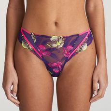 De Georgia rioslip van Marie Jo is uitgevoerd in de kleur Clearwater. Met deze eye-catching lingerie onder je zomeroutfit start je elke dag elegant en zelfverzekerd. De opvallende oranje broderie heeft een uniek bloemenpatroon en geeft een mooi contrast tegen de blauwe achtergrond. Door de lichtdoorschijnende materialen krijgt de slip een verleidelijke uitstraling. De achterkant van de slip is effen blauw en naadloos afgewerkt waardoor deze niet zichtbaar is onder je kleding. Combineer deze slip met een van de Georgia BH's. Clearwater is pure flowerpower in felle tinten.
