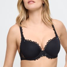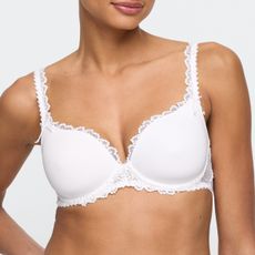 De Jane hartvorm BH van Marie Jo is uitgevoerd in de kleur True Red. Deze rode hartvorm BH is aan de randen afgewerkt met een verfijnde, romantische bloemenbroderie. De glinsterende accenten en elegante details geven de BH een ultiem verleidelijke uitstraling. De gladde cups sluiten hoger op de borst waardoor dit model geschikt is voor vrijwel elk type borst. De met broderie versierde schouderbandjes zijn een sierlijke toevoeging aan deze sensuele BH. Combineer deze BH met een van de bijpassende slips voor een complete set.