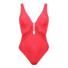 Het Honesty badpak van Maryan Mehlhorn is uitgevoerd in de kleur Nocturne. Dit stijlvolle badpak heeft tussen de cups een metalen U waardoor het decolleté geaccentueerd wordt. De geplooide stof geeft het badpak een extra chique uitstraling. Door de hoogwaardige en duurzame materialen draagt het badpak als een second skin!