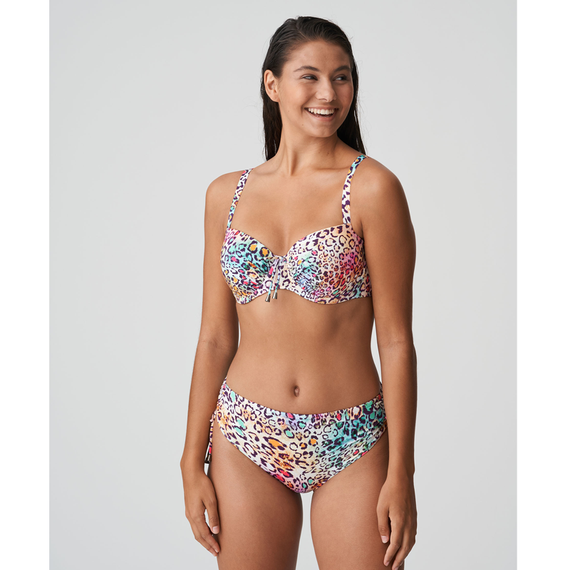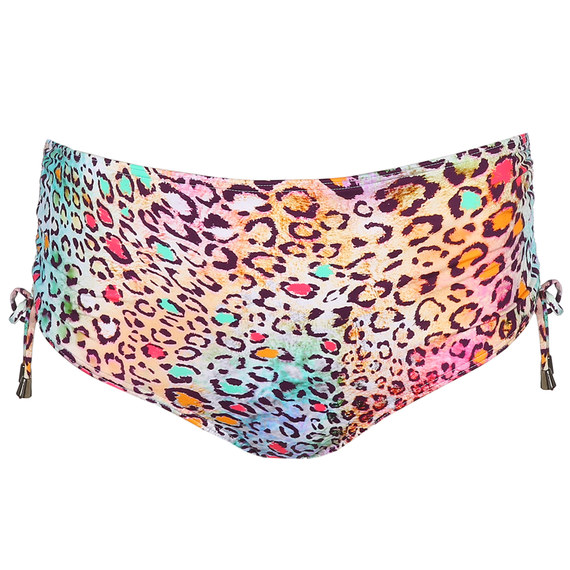 Het Managua hoge verstelbare bikinibroekje van PrimaDonna Swim is uitgevoerd in de kleur Tropical Leo. Dit hoge bikinibroekje heeft een kleurrijke luiaardprint. De hoge taille camoufleert een eventueel buikje. Het broekje heeft aan de zijkanten koordjes, waarmee je de hoogte zelf naar wens kan verstellen. Strop de zijkanten op om te zonnen, of naar beneden om comfortabel te zwemmen. De crazy kleurtjes van Tropical Leo geven je een hippe, zomerse luipaardlook.