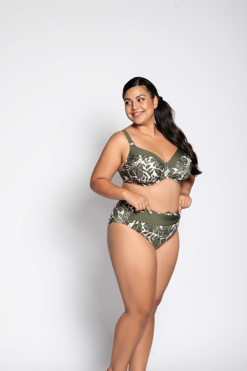 De Bali bikinitop van Ulla Swim is uitgevoerd in de kleur Olive. De tropische, groene print en V-hals van deze bikinitop zorgen voor een elegante uitstraling en een perfecte pasvorm. Voor optimaal comfort zijn de brede banden en de middelste band verstelbaar in lengte, zodat de top precies op jouw lichaam aansluit. De driedelige cups van simplex met functionele tule en geïntegreerde beugels bieden stevige ondersteuning en een mooie vorm. Combineer met een van de bijpassende bikinibroekjes.